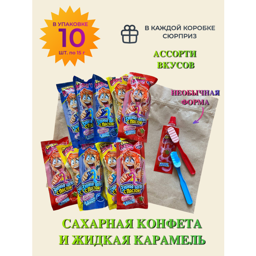 Сахарное драже и жидкая карамель "зубная щетка С пастой, крафт-пакет 10шт.