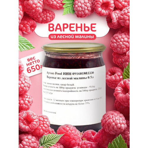 Варенье "Архыз Food" малиновое, без ГМО, консервантов и ароматизаторов, 500 мл