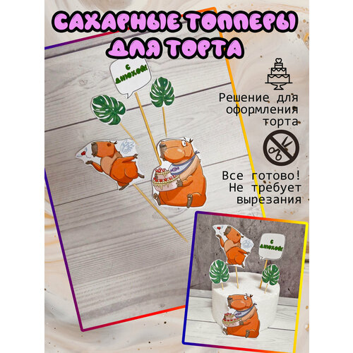 Топперы Капибара на торт. Съедобный декор. Малый набор.