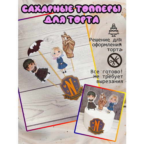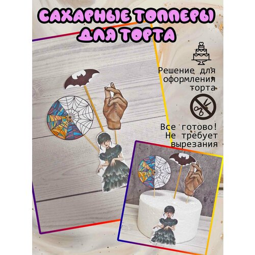 Топперы Венсдей мультяшные на торт. Съедобный декор. Малый набор.