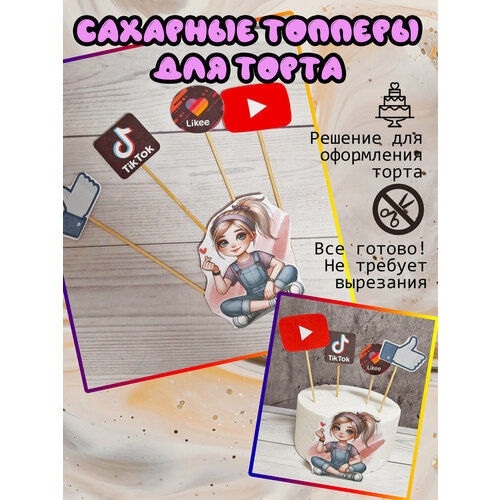 Топперы Девочка в джинсах и соц. сети на торт. Малый набор.