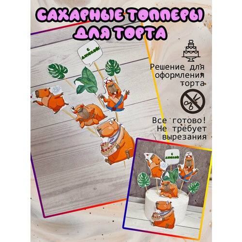 Топперы Капибара на торт. Украшение для торта. Средний набор.