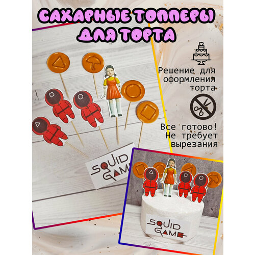 Топперы Игра в кальмара на торт. Украшение для торта. Средний набор.