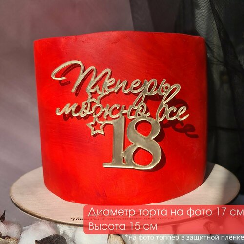 Топпер для торта "Теперь можно всё 18"/ на 18 лет, топпер из зеркального акрила, золотой