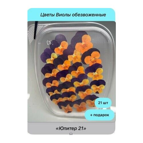 Цветы Виолы "Юпитер", 21 шт. — съедобные, обезвоженные, сушеные для декора торта, леденцов, шоколада, десертов, куличей.