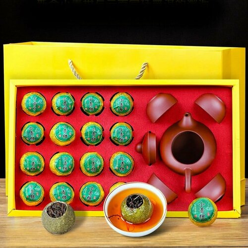 Чайный набор китайский. Пуэр шу в мандарине с чайником и чашками. Подарочный чай Мандариновый сад
