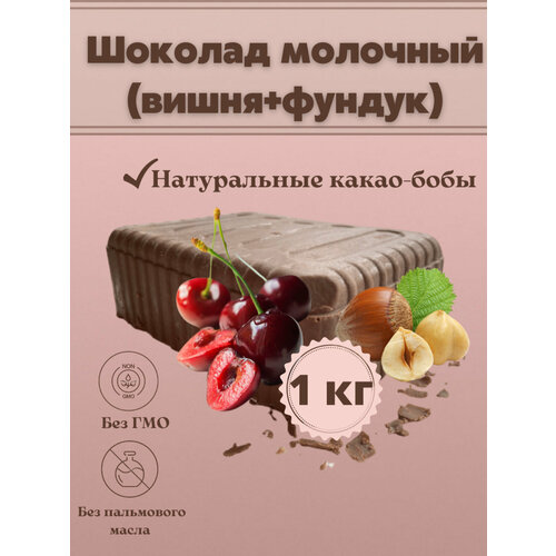 Шоколад молочный вишня и фундук в брикете плитка 1 кг