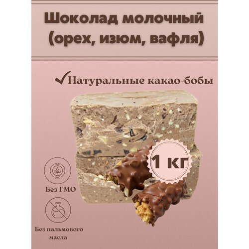 Шоколад молочный с орехом изюмом и вафлей в брикетах плитка 1 кг