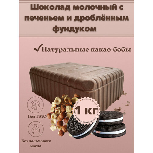 Шоколад молочный с печеньем и дроблённым фундуком в брикетах плитка 1 кг