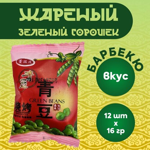 Жареный зеленый горошек со вкусом барбекю упаковка 12 шт по 16 гр