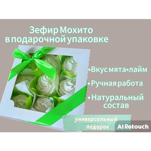 Зефир ручной работы Мохито (мята+лайм) подарочный набор в коробке 20*20 см 9 зефирных завитков