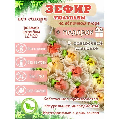 Зефир без сахара ПП тюльпаны яблоко подарочная коробка12*20