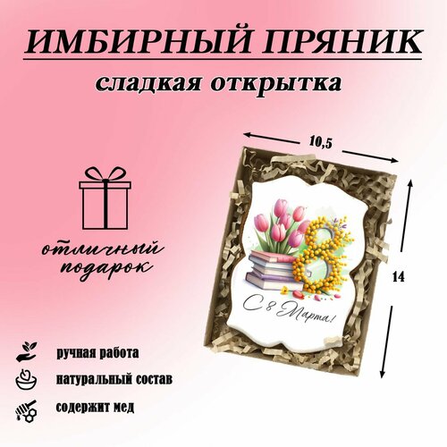 Имбирный пряник в подарок девушке, женщине, коллеге, учителю на 8 марта, сладкий подарок
