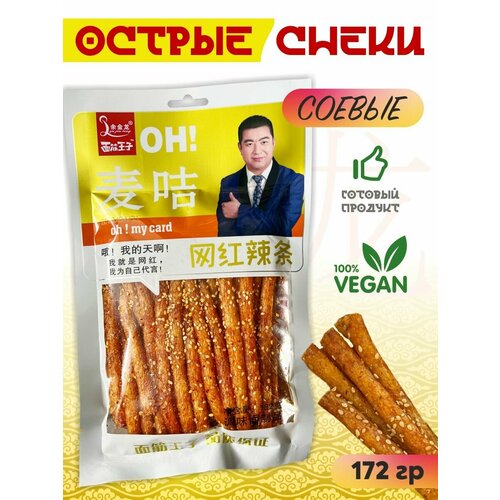 Азиатские соевые снеки острые, Латяо, соевое мясо 172 гр / коричневая