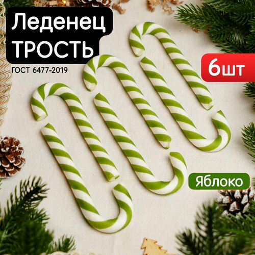Карамель леденцовая Трость со вкусом яблока, набор 6шт. по 30гр. (леденцы ручной работы)