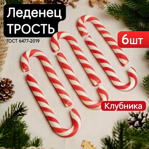 Карамель леденцовая Трость со вкусом клубники, набор 6шт. по 30гр. (леденцы ручной работы)