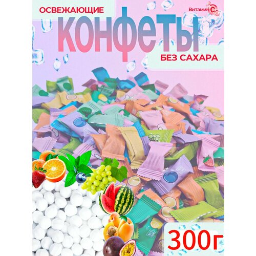 Карамель фруктовая без сахара "Витамин С", Леденцы освежающие конфеты, 300г