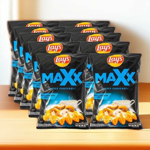 Картофельные рифлёные чипсы, Lays, "Maxx" 110 г со вкусом "Грибы в сливочном соусе" X10 упаковок