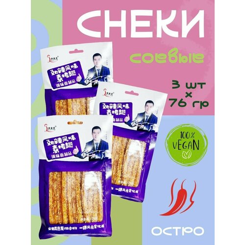 Азиатские соевые снеки острые, Латяо, соевое мясо 3 шт х 76 гр фиолетовые