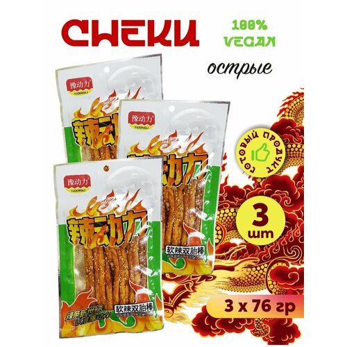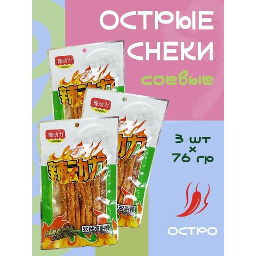 Азиатские соевые снеки острые, Латяо, соевое мясо 3 шт х 76 гр двойная палочка / зеленые