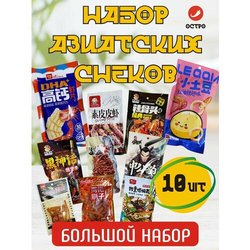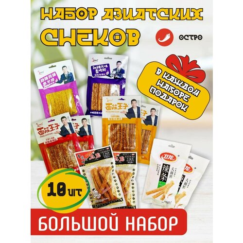Азиатские соевые снеки острые, Латяо, соевое мясо и чипсы / большой набор 10 шт