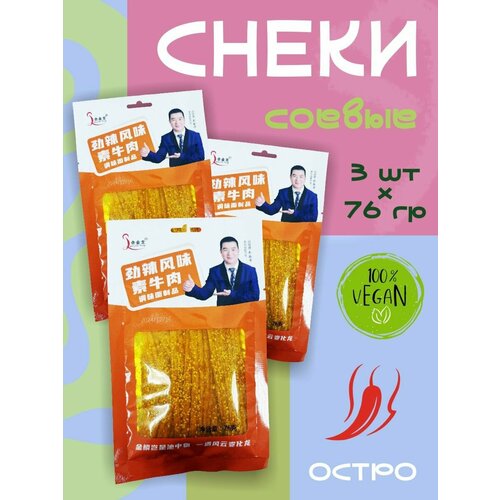 Азиатские соевые снеки острые, Латяо, соевое мясо со вкусом говядины 3 шт х 76 гр
