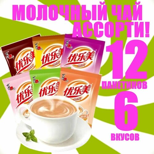 Китайский молочный чай ASIAN MILK TEA YOULEMEI в пакетиках 12 штук, 6 вкусов, растворимый напиток, чай для бабл ти