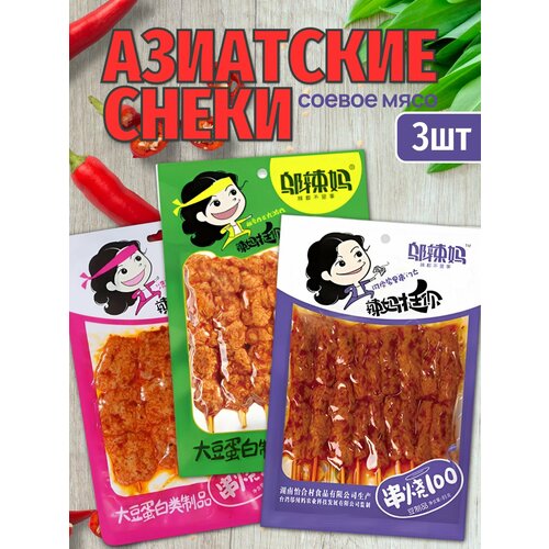 Китайский снек Wulama Соевое Мясо шашлычки, набор 3 вкуса