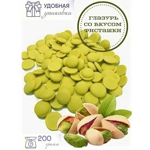 Кондитерская глазурь Шокомилк в монетах со вкусом Фисташка для украшения кондитерских изделий 200 гр
