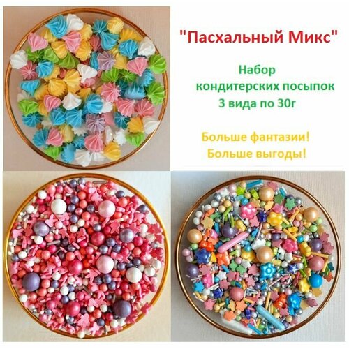 Кондитерская посыпка Пасхальный Микс, набор 3 вида по 30г