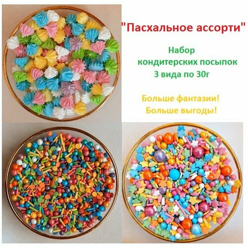 Кондитерская посыпка Пасхальное ассорти, набор 3 вида по 30г
