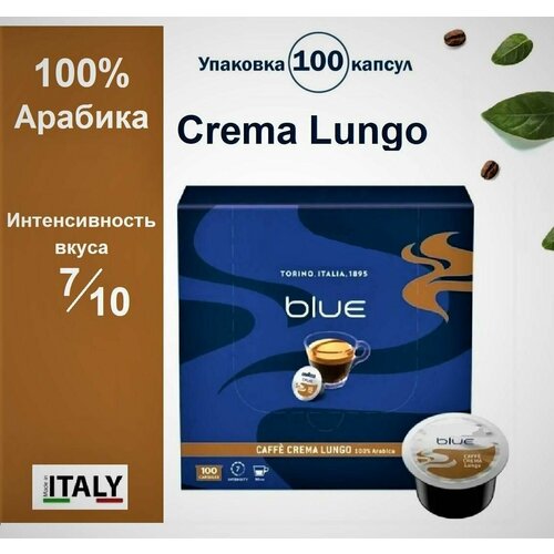 Кофе в капсулах Crema Lungo, 100 шт, 100% Арабика для кофемашин Blue