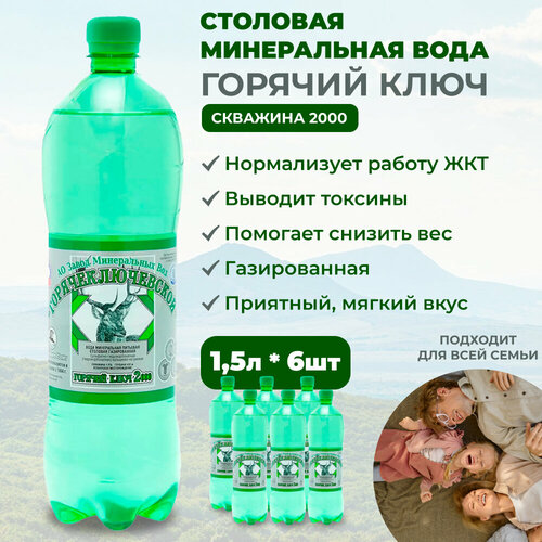 Столовая вода Горячий Ключ-2000. Объем 1.5л. Вода минеральная питьевая газированная слабо минерализована природная целебная лечебная, выводит токсины, для детей