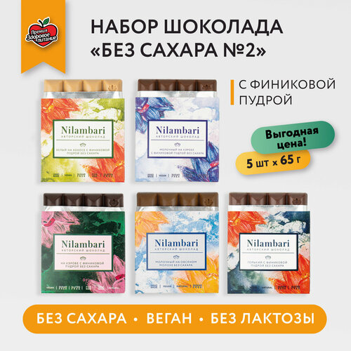 Шоколад плиточный "Без сахара №2 с финиковой пудрой" Ассорти 5 шт Без лактозы Веган продукт ручной работы/ GreenMania