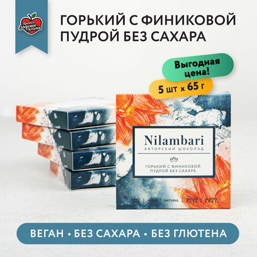 Шоколад горький с финиковой пудрой без сахара Набор 5 шт Без глютена Без лактозы Веган продукт ручной работы / GreenMania