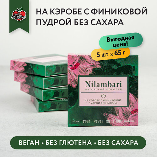 Шоколад на кэробе с финиковой пудрой без сахара Набор 5 шт. Без глютена Без лактозы Веган продукт ручной работы / GreenMania
