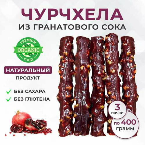 Чурчхела гранатовая 3 пачки по 450г без сахара без глютена ремесленная