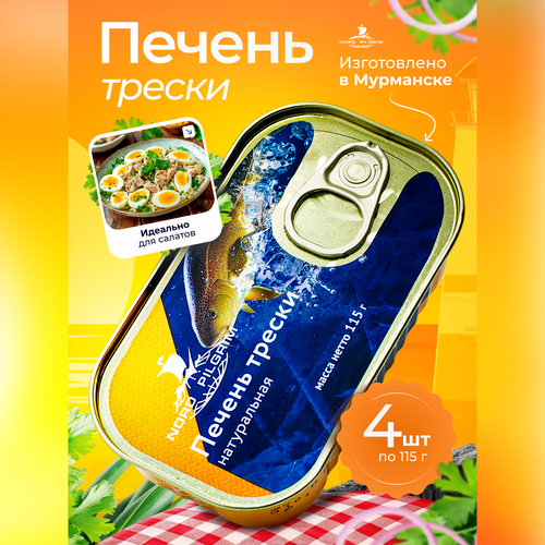 Печень трески натуральная из мороженого сырья Nord Pilgrim, 4 шт. по 115 г