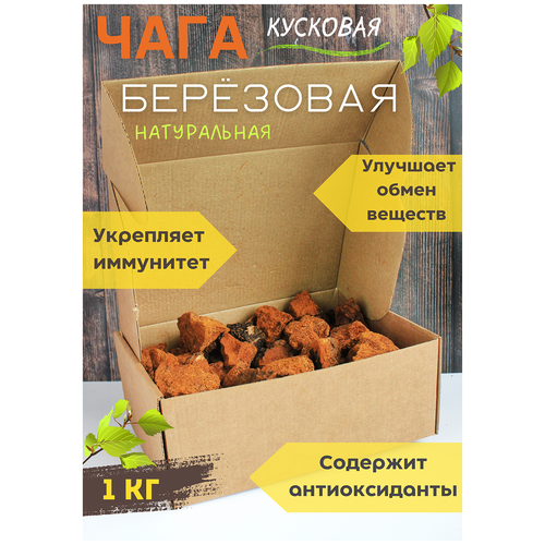 Чага берёзовая Огнецвет натуральная кусковая 1 кг в коробке