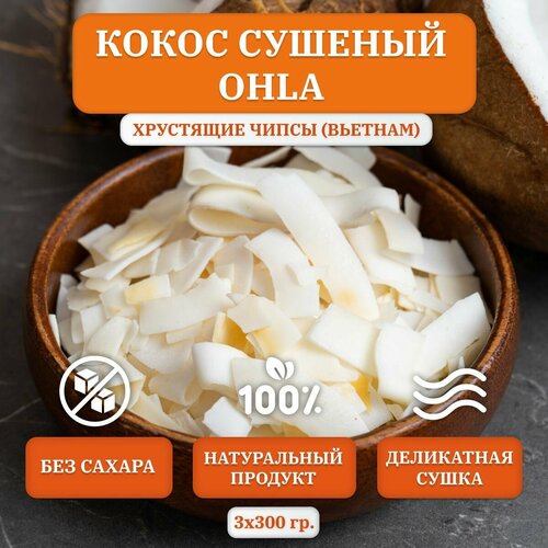 Кокос сушеный OHLA, хрустящие чипсы, 3 банки по 300 гр., Вьетнам