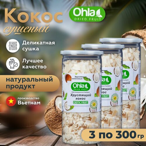 Кокос сушеный OHLA, хрустящие чипсы, 3 банки по 300 гр, Вьетнам