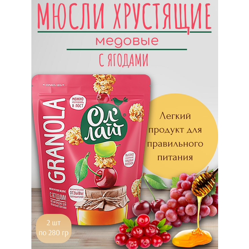 Мюсли медовые запечённые Гранола "С ягодами" Оллайт, 2 шт по 280 г