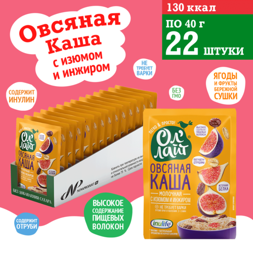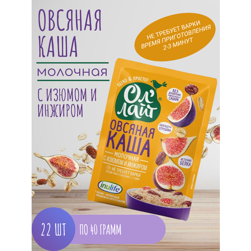Овсяная каша быстрого приготовления молочная без сахара с изюмом и инжиром Ол лайт, 22 шт по 40 г