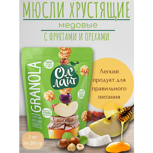 Мюсли медовые запечённые Гранола "С фруктами и орехами" Оллайт, 2 шт по 280 г