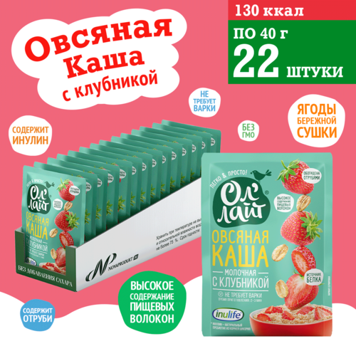 Овсяная молочная каша быстрого приготовления в пакетиках "Ол’Лайт" с клубникой 22шт по 40г.