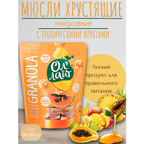 Мюсли медовые запечённые Гранола "С тропическими фруктами" Оллайт, 2 шт по 280 г