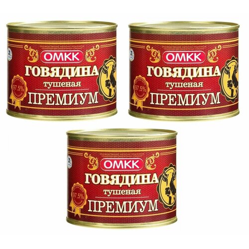 Говядина тушеная Премиум 97,5%, омкк, Беларусь, 525 г х 3шт