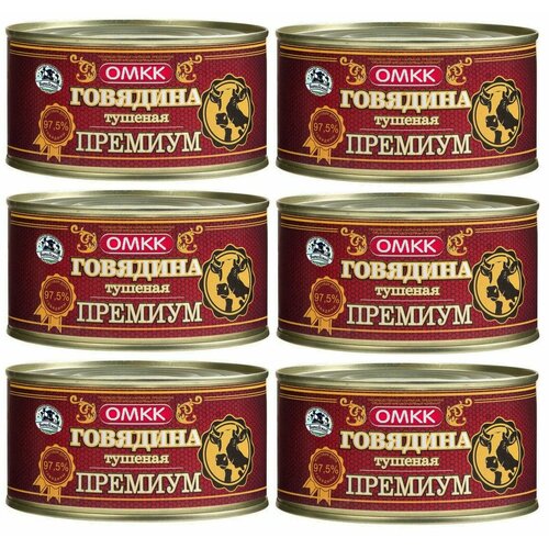 Говядина тушеная Премиум 97,5%, омкк, Беларусь, 325 г х 6шт