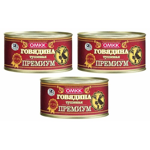 Говядина тушеная Премиум 97,5%, омкк, Беларусь, 325 г х 3шт