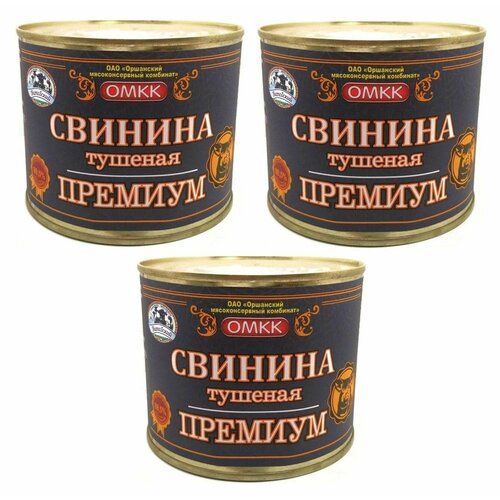 Свинина тушеная Премиум 98,5%, омкк, Беларусь, 525 г х 3шт